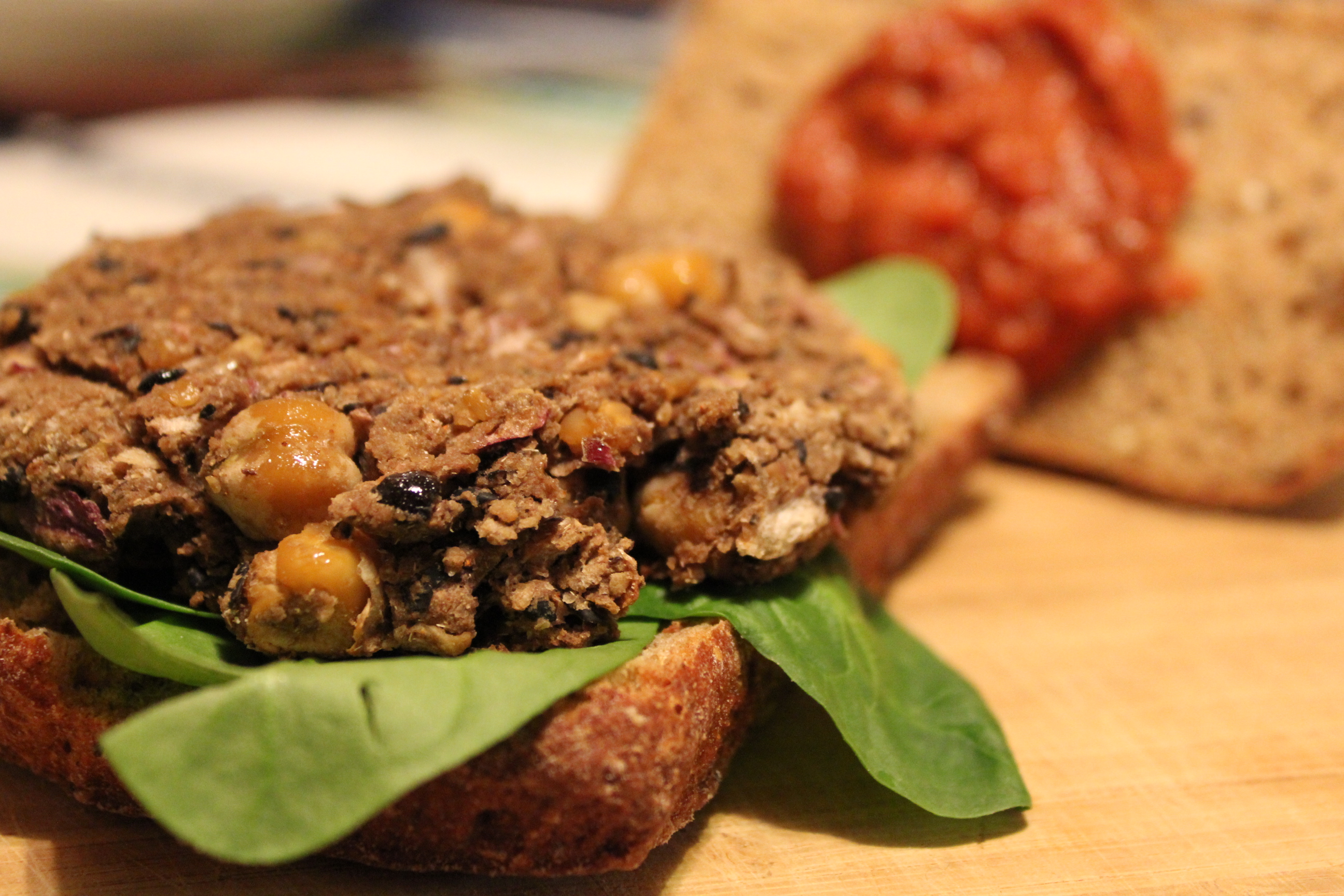This is a spicy spin on a classic bean burger. The widely loved black beans have a sweet subdued nature that allow the cumin and cayenne flavor to explode onto the taste buds. Topped with a super special sauce that contains the intense heat of the chipotle pepper layered with the creamy fullness of cannellini beans the Latin peppers’ own smoky flavor. Instead of the delicious topping being dangerously fatty, this sauce only adds to the fantastic nutritional value of the meal. And no worries about this being an incomplete vegetarian protein, the protein of these black beans are made complete by combining them with the whole wheat flour and whole grain bun. This protein packed meal is nutritious, simple and delicious, plus… the youth think that these burgers rock it!