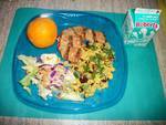 Prepare rice using reserved pineapple juice, orange juice, water, zest and curry powder.