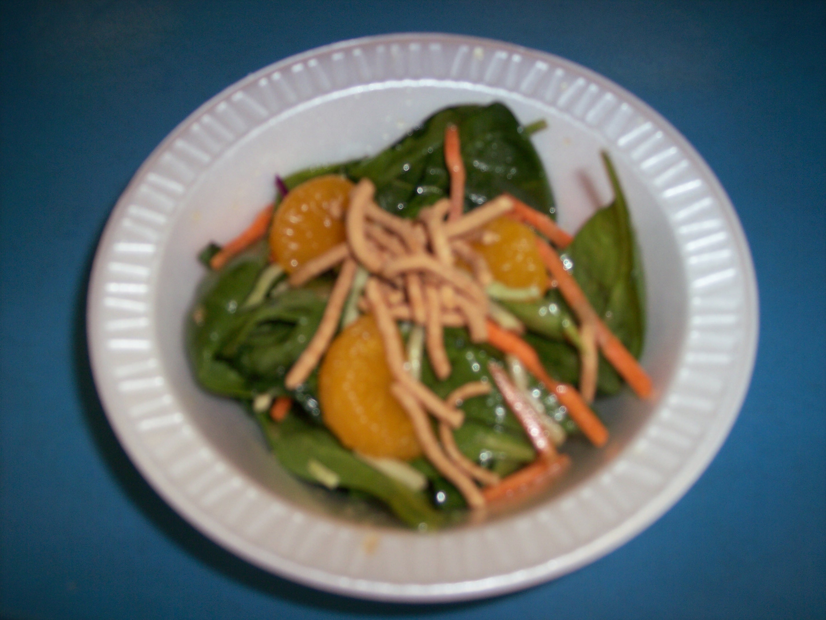 This side sish is a great way to get your students to eat spinach. With a light and fresh tasting dressing and the crunch of chow mein noodles, this salad will make taste buds sing!