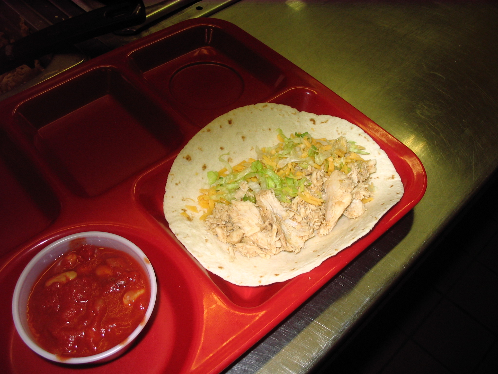 Chicken: Season raw boneless chicken breast with 2/3 of taco seasoning. Place in roasting pan, adding water half way up the side of the chicken and cook in oven at 350 degrees until pull-apart tender with an internal temperature of 180 degrees. Add more water if needed. Drain liquid and allow to cool enough to handle. Pull chicken to a medium shred or use a paddle in a 20 quart mixer to pull apart.
