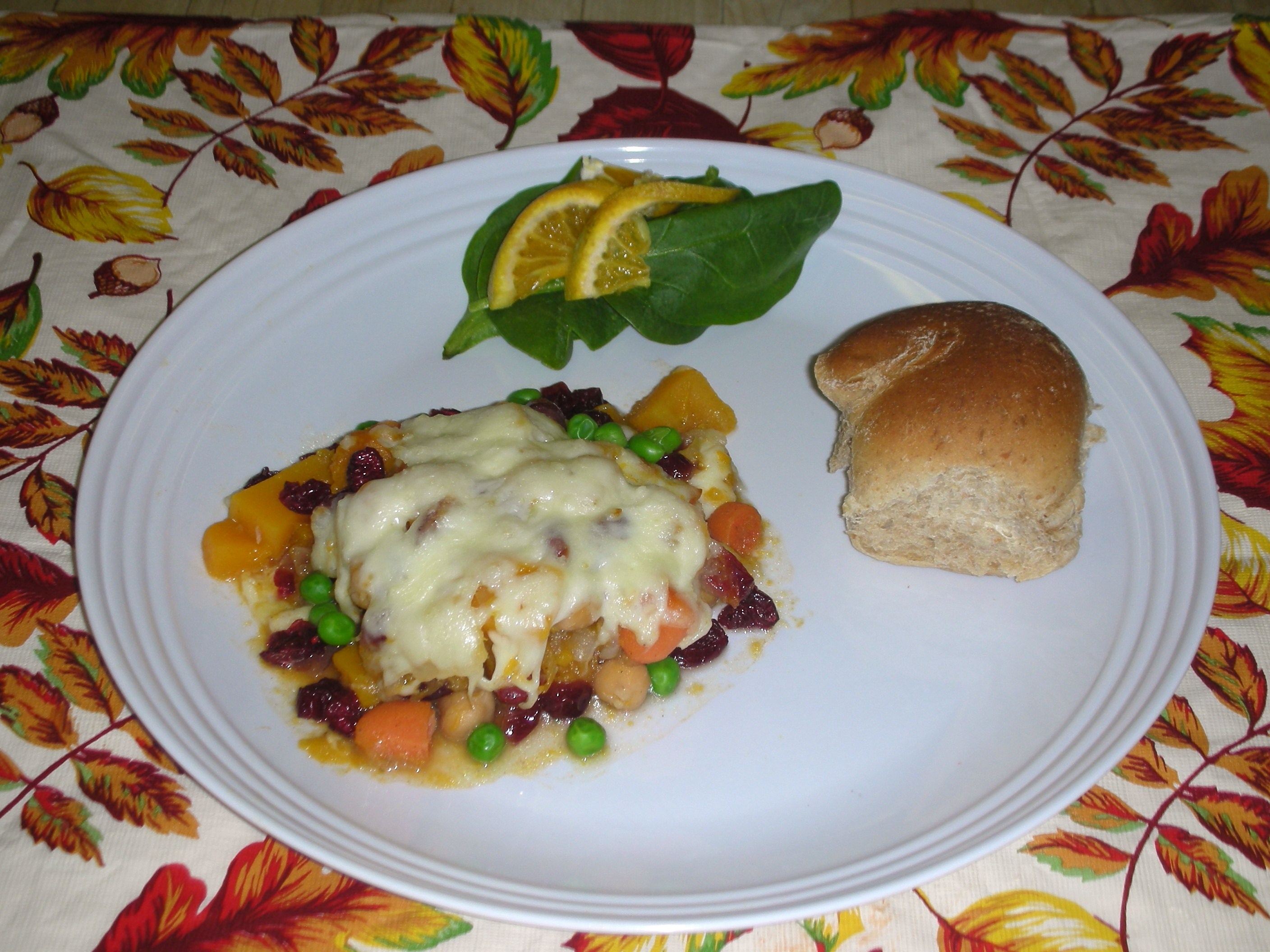 Wayland's Own "Autumn Vegetable Medley" - It is a colorful, sweet blend of some of the best tasting vegetables - butternut squash, peas, carrots, cranberries, garbanzo beans and apples, topped with melted mozzarella cheese. So delicious, you'd never know it was good for you too! Once you've tasted it, you'll be sure to want "Autumn Vegetable Medley" again and again! It can be served as a main vegetarian and gluten free dish for all to enjoy.