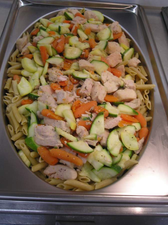 This main dish is an Italian favorite. Perfect Pasta Primavera with Chicken is combination of fresh nutritious vegetables, lightely baked chicken and scrumptious whole wheat pasta; all sauted in a delicious olive oil and chicken broth sauce. This healthy meal contains grains, protein, vegetables and a small amount of olive. For extra flavor can can top your meal with a tablespoon of grated romano cheese which only adds 22 calories or 2.5 grams of fat.