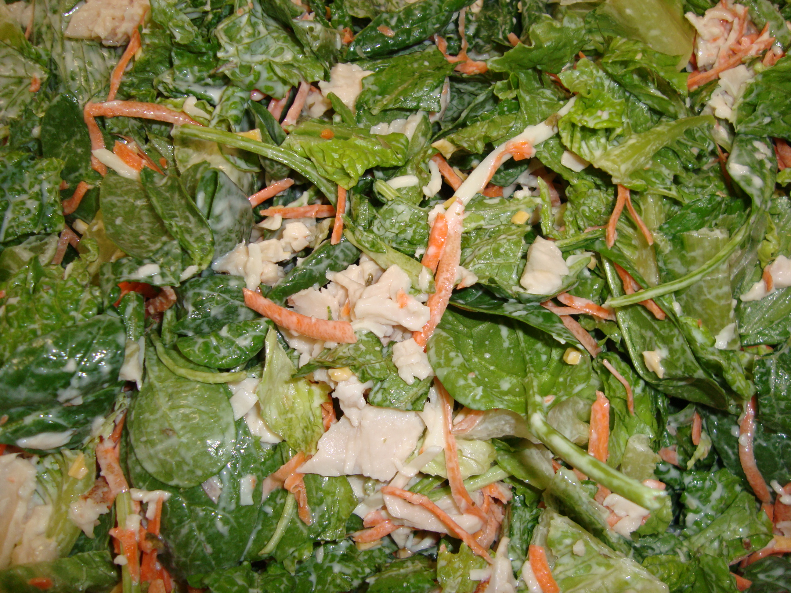 Use chopped romaine lettuce, chop and dice other ingredients into bowl adding the Ranch dressing. MIX REALLY WELL.