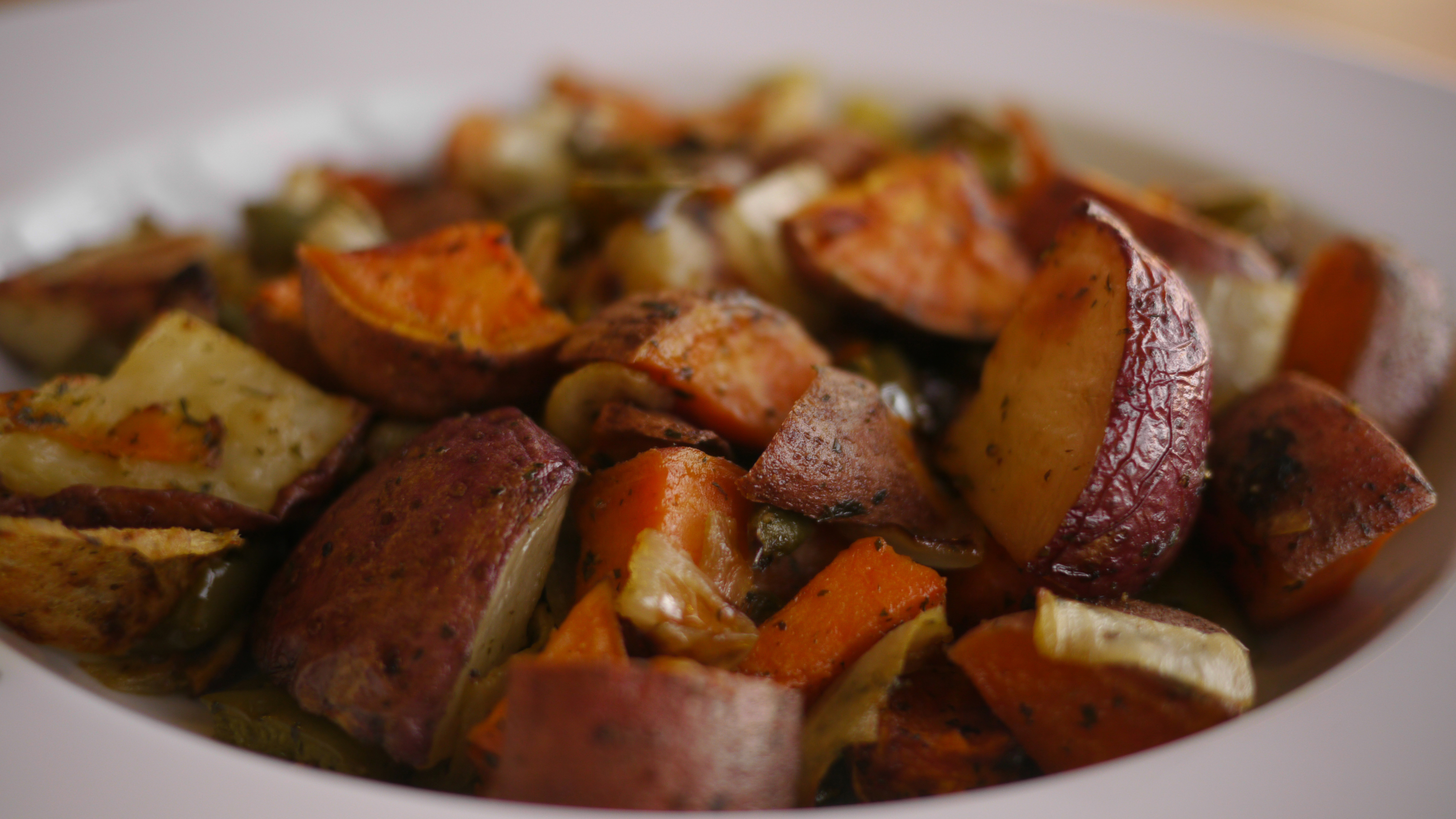 Our medley of our own North Carolina sweet potatoes, white potatoes, green peppers, onions and herbs are roasted together to enhance their naturally delicious flavors. Do not let the simplicity of this dish deceive you, its aroma and color are equally enticing, while its texture and taste are pleasing to the palates of students, teachers and staff. We love that can use our NC Farm to School sweet potatoes when seasonal and available for this winning side dish.*