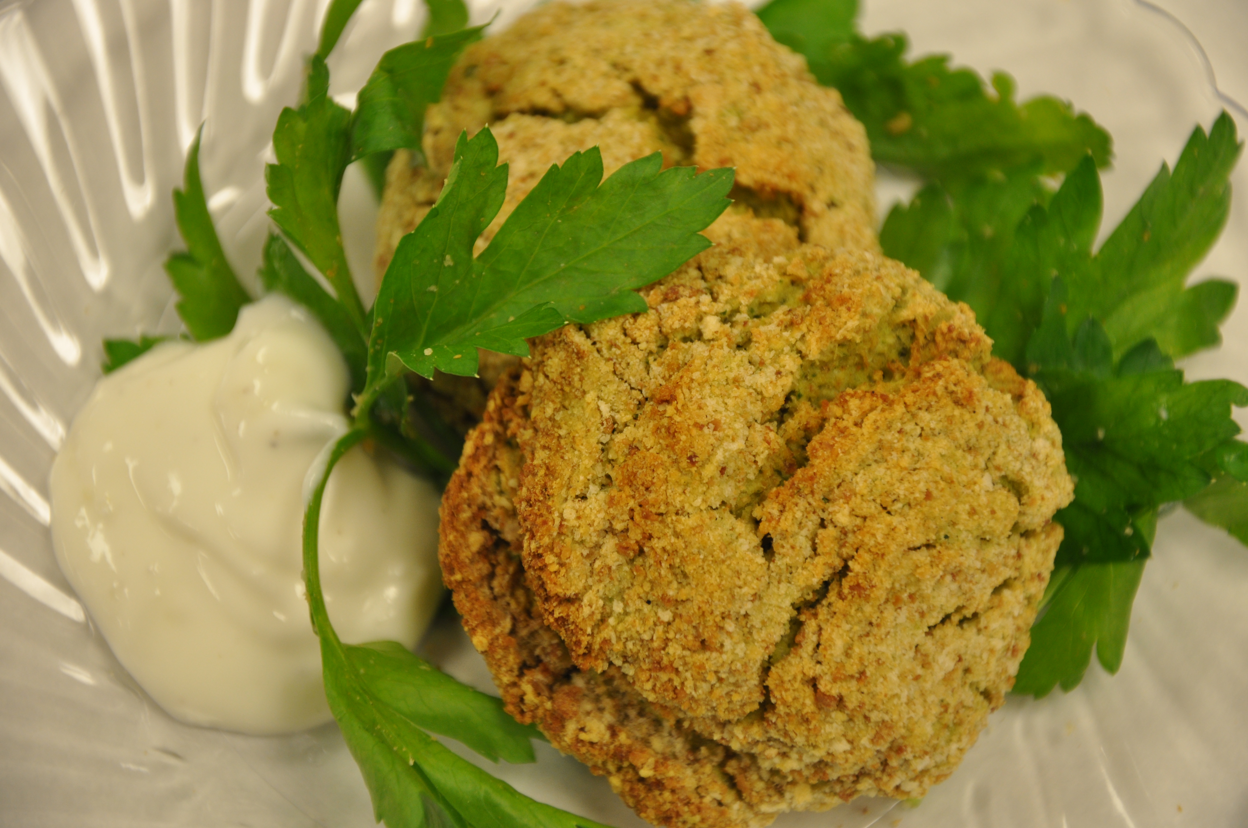 Baked Falafel Cakes with Yoghurt Dip
