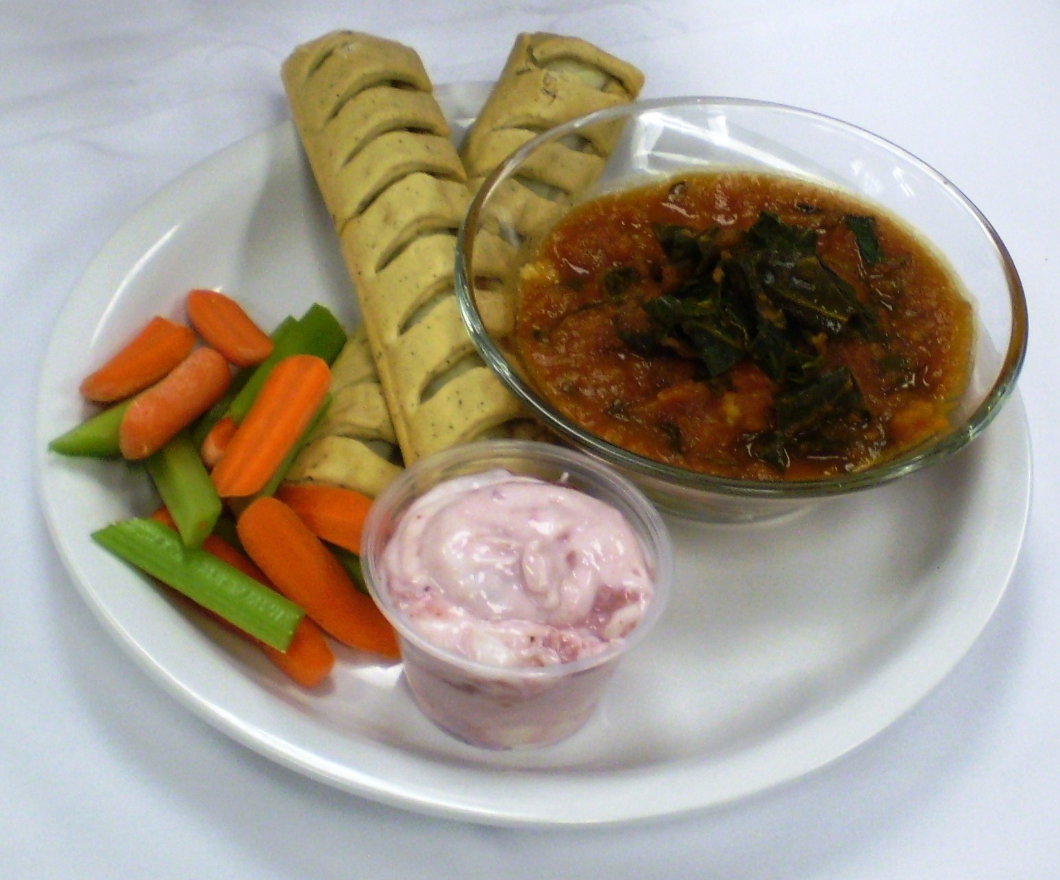 In a sauté pan wilt Kale with Olive Oil and a touch of unsalted vegetable stock. In a medium pot over medium heat add Olive Oil. Stir in onions and sauté until translucent. Add garlic and salt and pepper to taste and sauté additional two minutes. Stir in diced tomatoes and unsalted vegetable stock. Bring to a boil then reduce heat to simmer, add carrots and sweet potatoes. Cook, covered 30 minutes. Remove from heat and use hand mixer (hand blender) until smooth. Then slowly add Silk Creamer a little at a time.