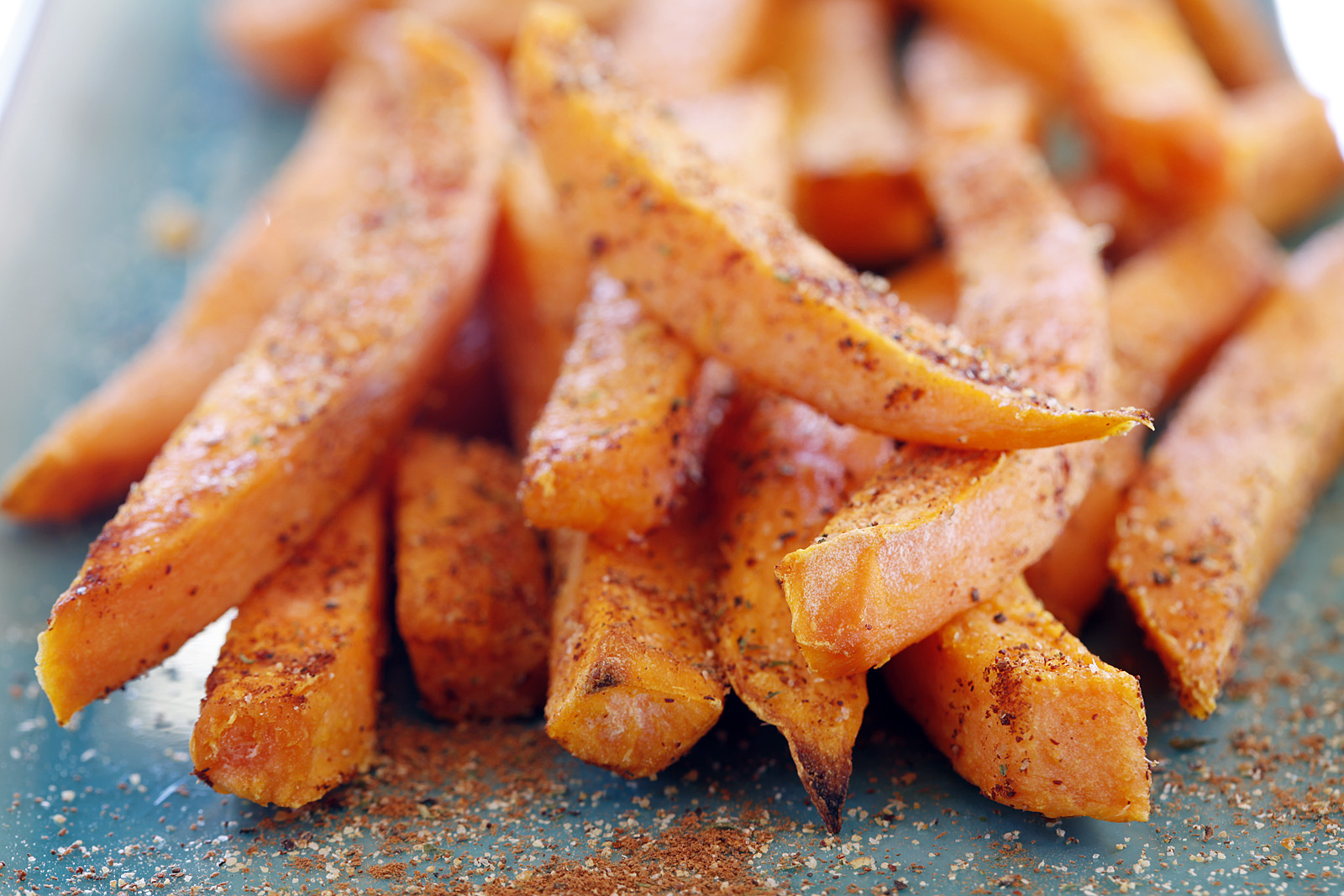 Arrange the sweet potato sticks in a single layer and so that they are not touching each other on a lined baking sheet.