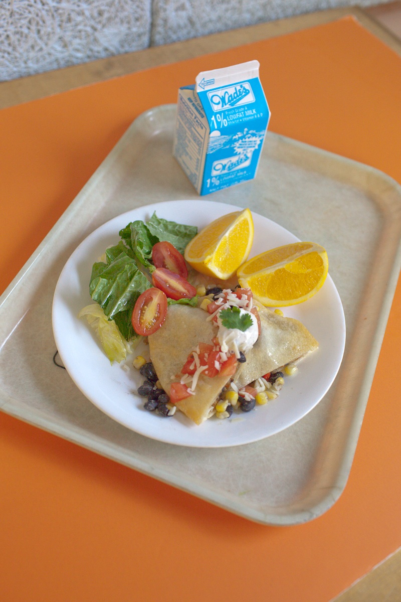 The Fiesta Wrap is a delicious main dish featuring a quinoa and black bean filling seasoned with cumin, chili powder, lime juice and a medley of shredded carrots, red peppers, red onion and reduced fat cheddar cheese. Students have the option of topping their wraps with fresh tomatoes, corn salsa or a fiesta sauce.