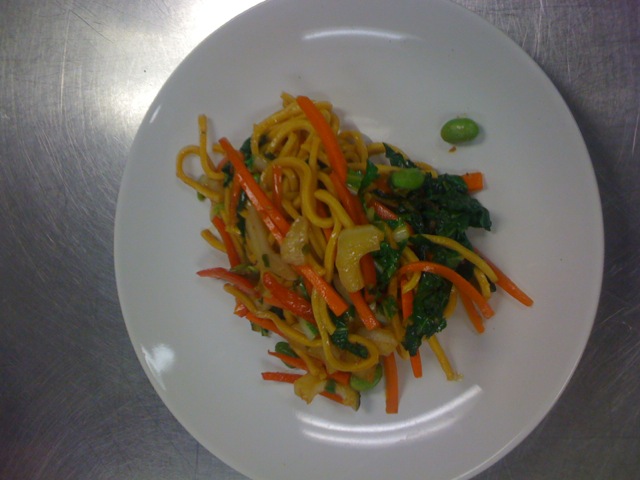 Serve stir fry with a 8oz scoop over a 1/2 cup noodles for each serving. (to serve family style you can toss the stir fry with the noodles)