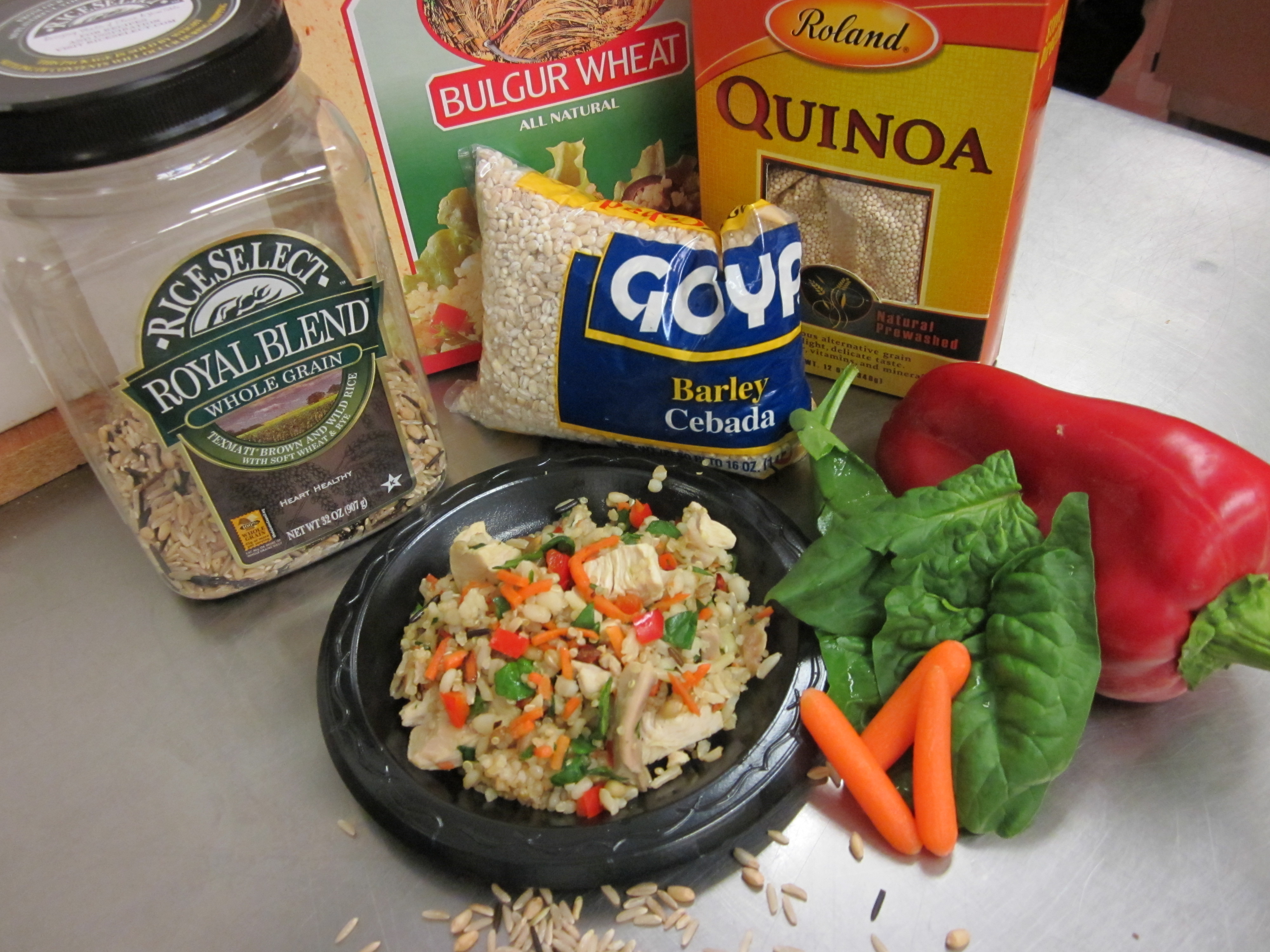 Once you have tasted "Rainbow Rice" you will feel like you've gone over the rainbow! Packed with healthy whole grains and colorful vegetables this recipe is a sure winner for those wanting a super healthy dish without sacraficing taste. The combination of whole grains, chicken, and vegetables make for a delicious entree on any school menu.