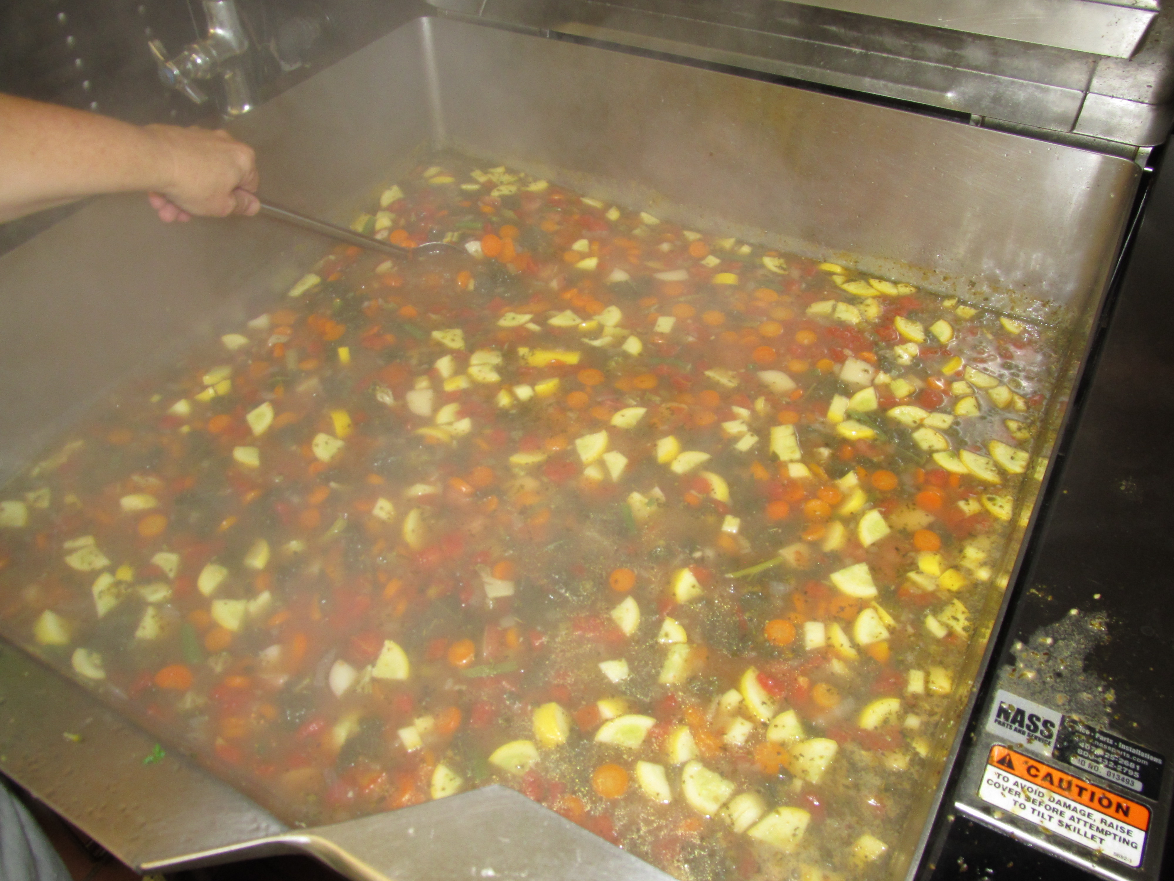 Heat olive oil in large pot and saute onions, celery and garlic until soft. Add water and veggie stock. Add remaining vegetables and bring to a boil. Turn down heat and simmer one hour. Season with salt free seasoning.